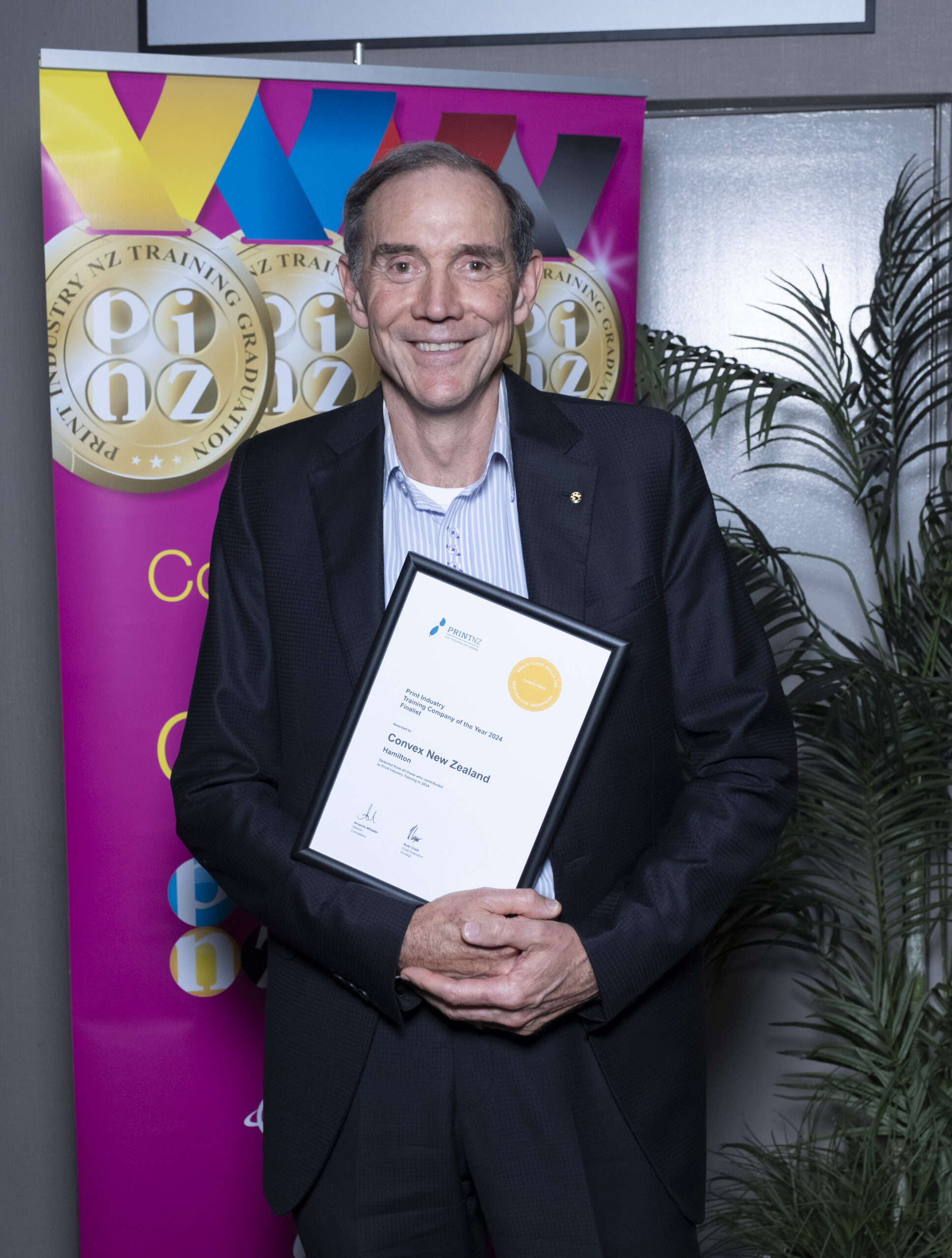 30 May 2025 It was with a lot of pride last week that Owen accepted an award on behalf of Convex for Print Industry Training Company of the Year 2024 Finalist at the Print NZ and Competenz training graduation evening.